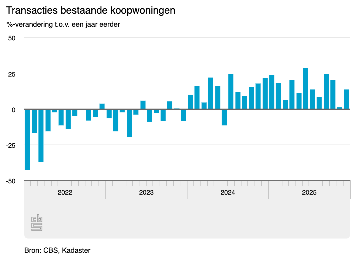 Het Kadaster maakte bekend dat het in december 27 154 woningtransacties registreerde. Dat is 14 procent meer dan een jaar eerder. In 2025 zijn 238 695 woningen verkocht, bijna 16 procent meer dan een jaar eerder.